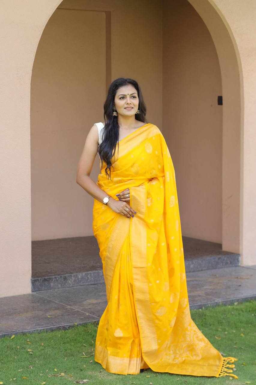 | Name : | KPR 212 YELLOW SOFT LICHI SILK SAREE |