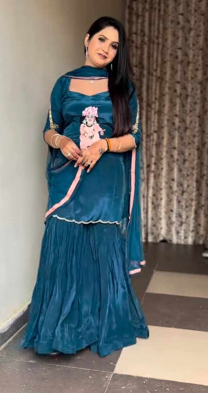 Top Fabric: Natural Crep with heavy embroidery work with fancy borders, less work sleeve with fancy latkan dori.