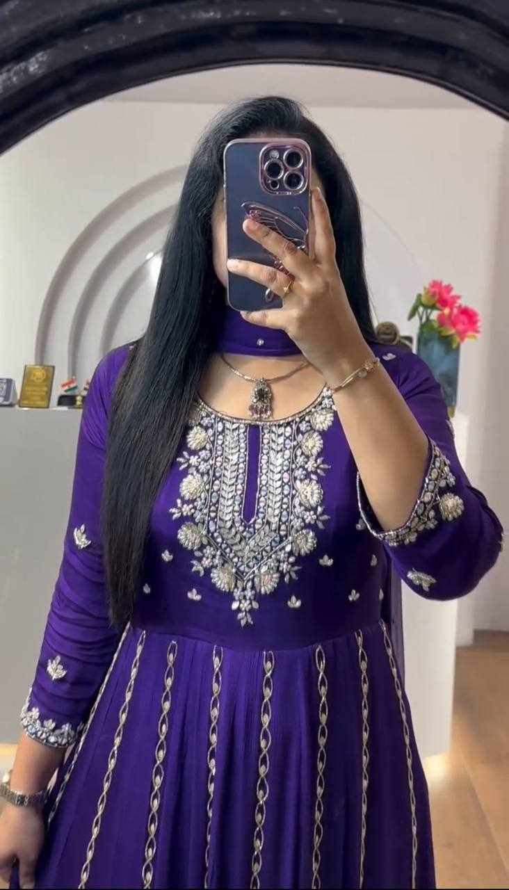 Pc 435 Violet Chinon Embroidery Sequence Gown