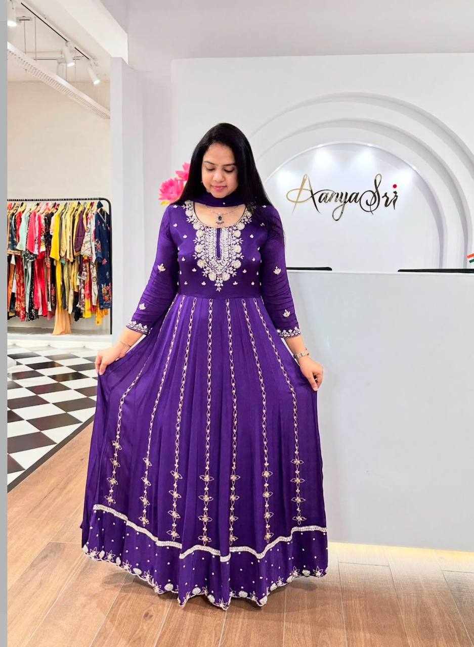 | Name : | Pc 435 Violet Chinon Embroidery Sequence Gown |