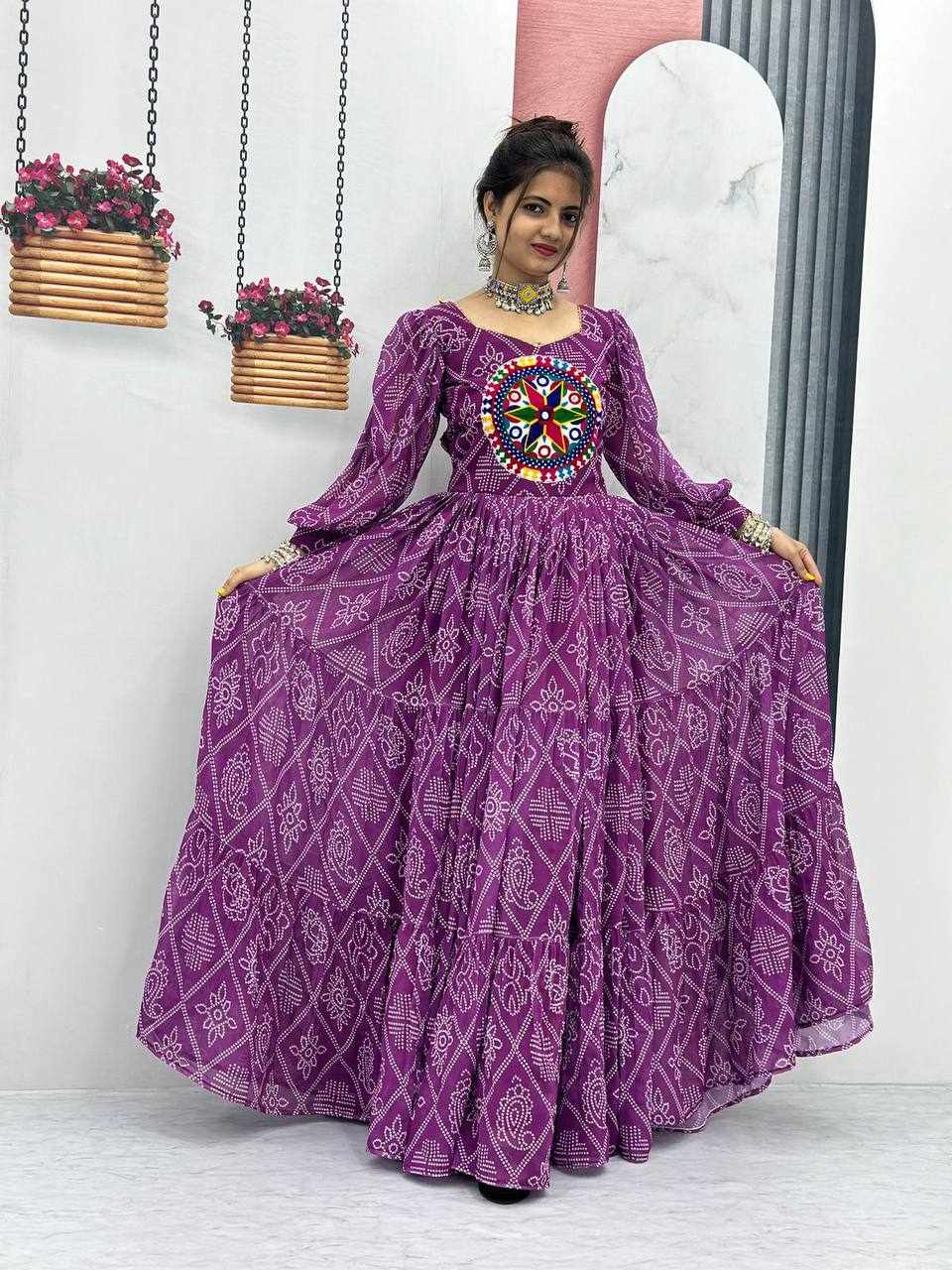 | Name : | PC N02 Purple Bandhani Print Gown |