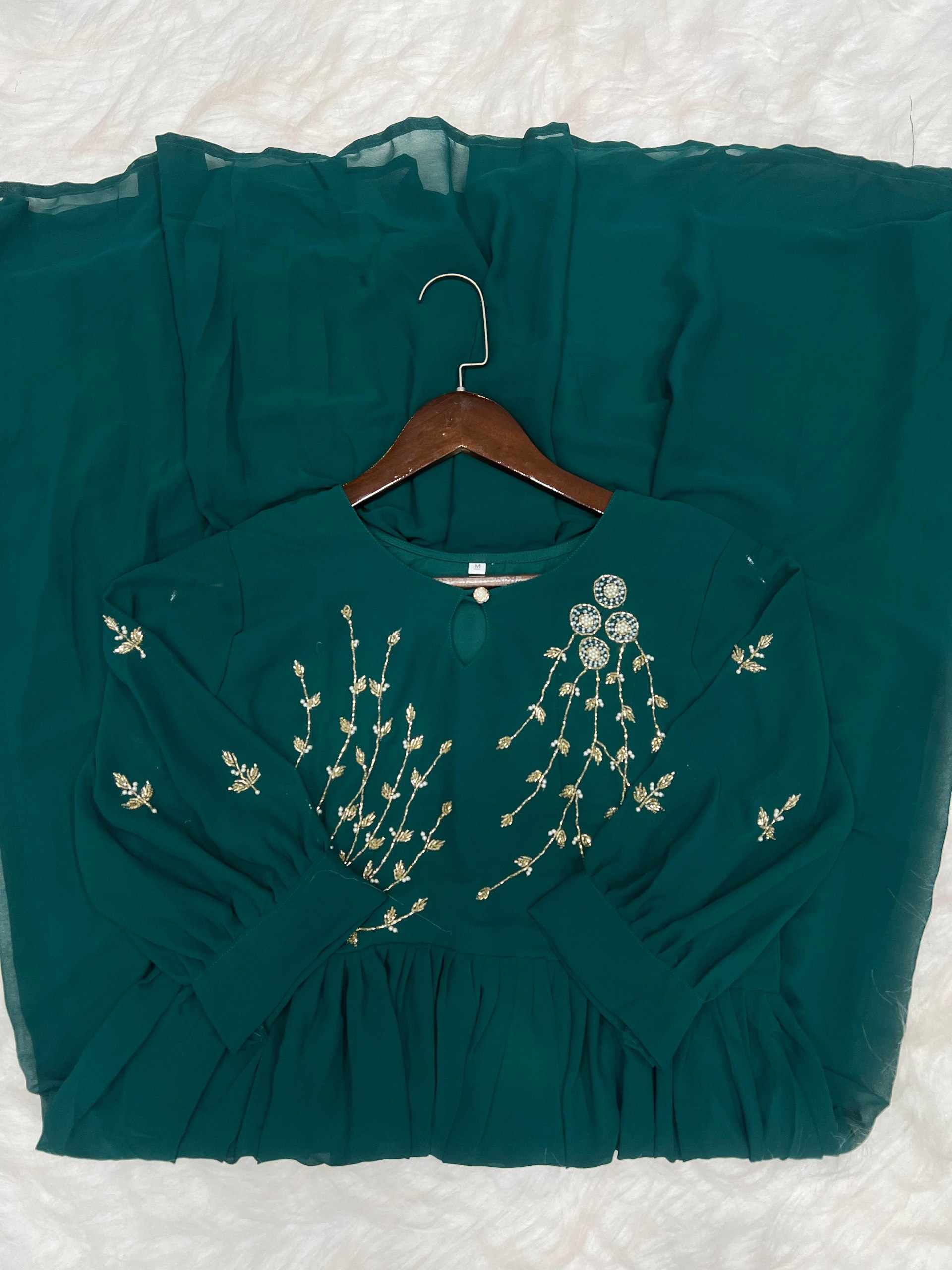 WM09 GREEN BLOOMING GEORGETTE HANDWORK KURTI